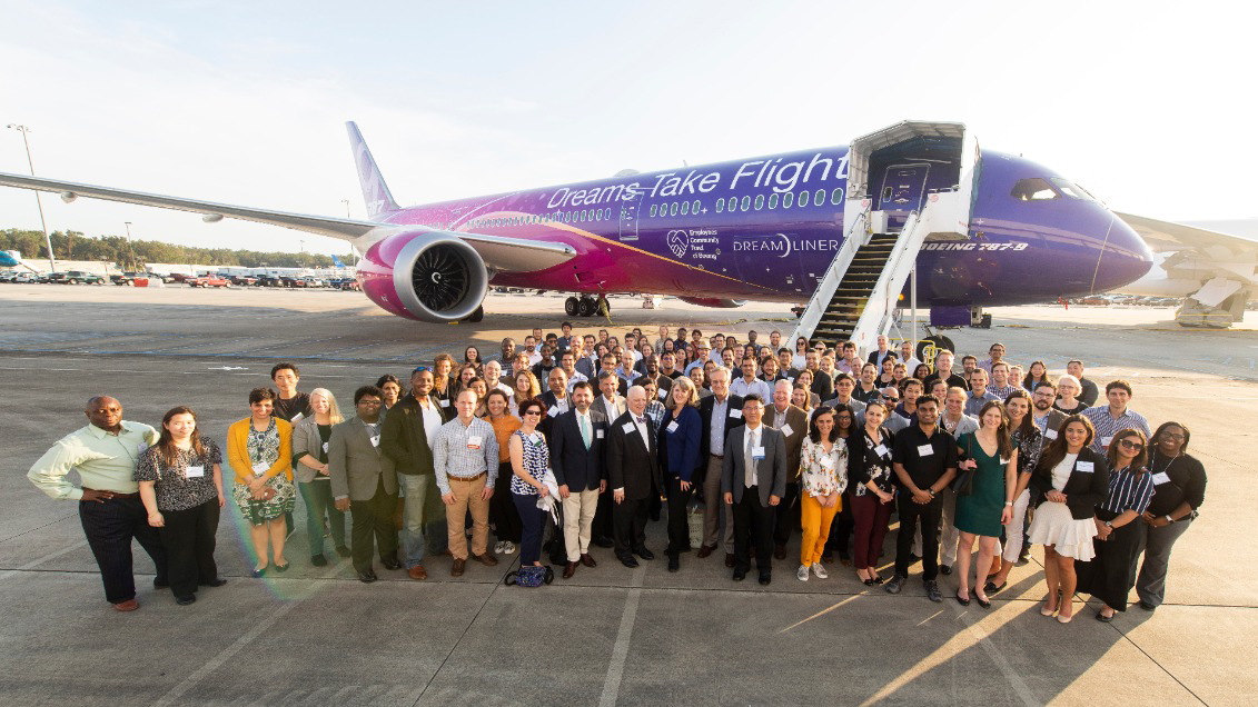 Rebecca Muenich, in front of a Boeing 787 Dreamliner at Boeing South Carolina, discovered similarities in the work presented at the U.S. Frontiers of Engineering symposium to her own work even though her work does not fall directly into any of the symposium’s four key areas. Photo courtesy of Rebecca Muenich.